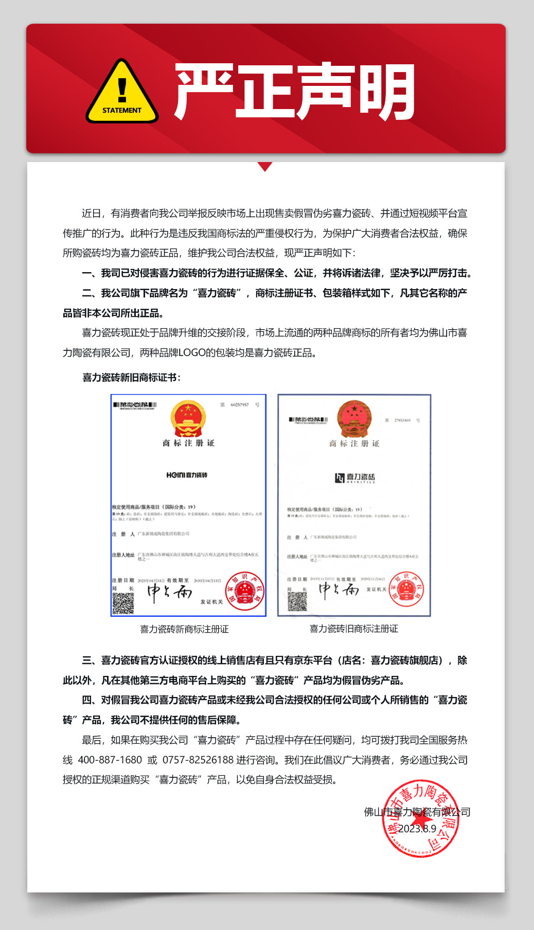 目前,喜力瓷磚在全國的專賣店已有500多家,已連續2年榮獲由中國建筑